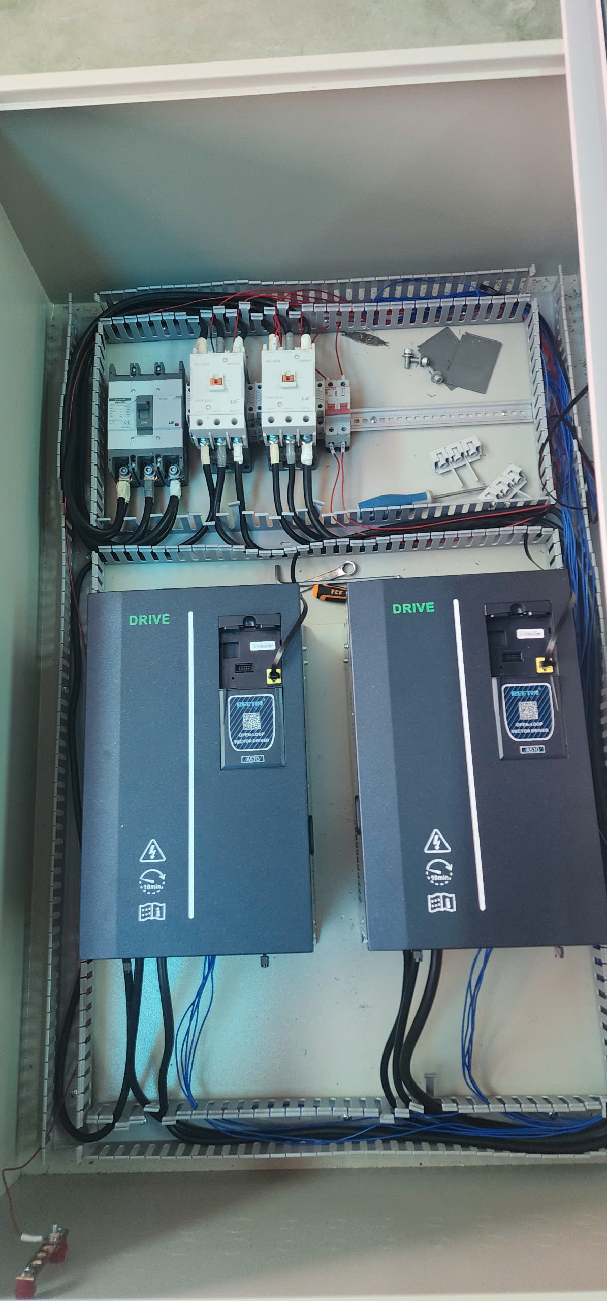 Chúng tôi cung cấp biến tần chính hãng từ các thương hiệu hàng đầu (như INVT, Delta, Schneider...) và tiến hành thiết kế, lắp ráp tủ điện biến tần công nghiệp. Việc lắp đặt được thực hiện cẩn thận, đảm bảo an toàn điện và tiêu chuẩn kỹ thuật.